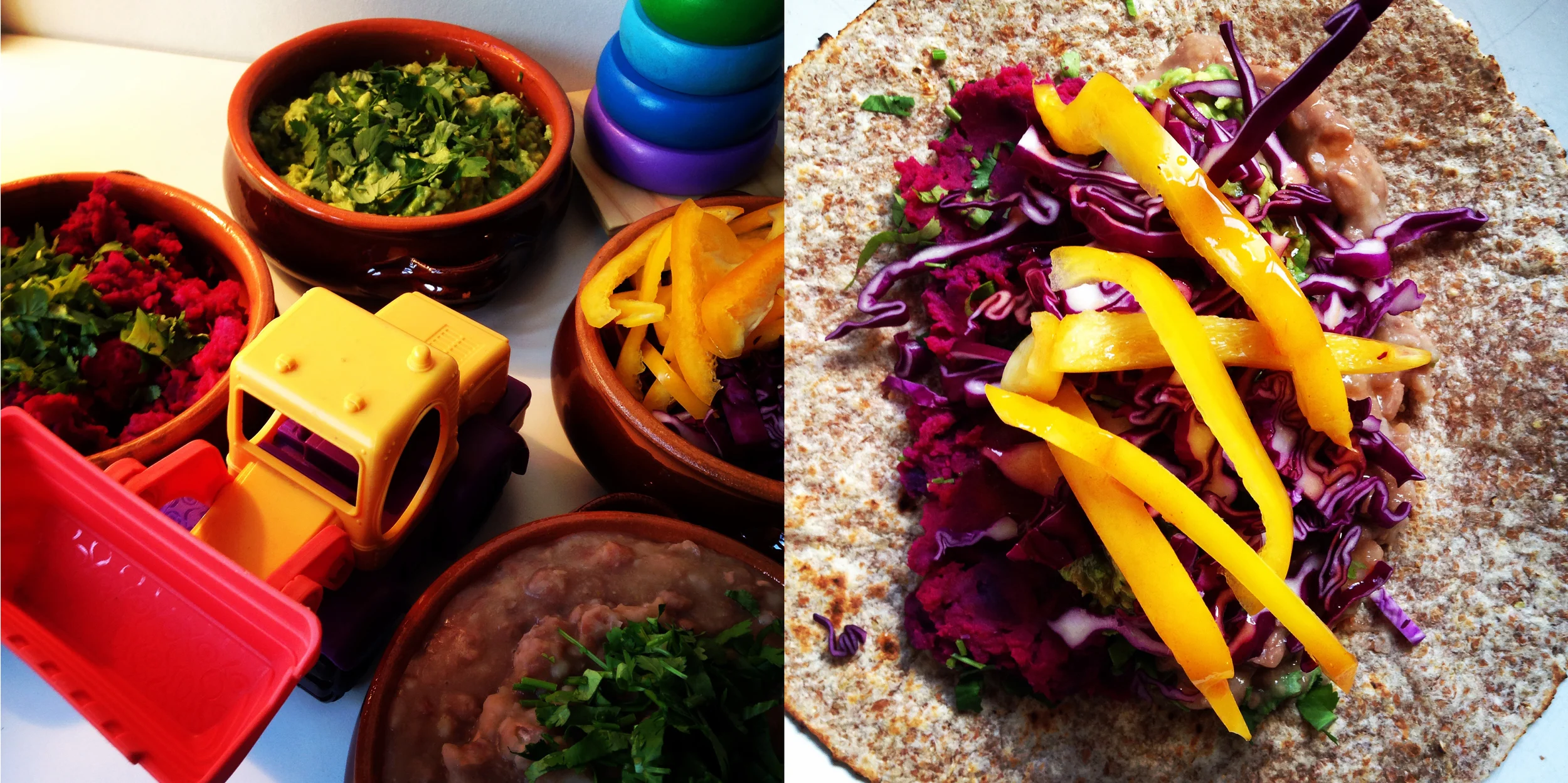 Luckily, there are some great options out there. We mostly use corn taco tortillas by an English company (this is not a plug for them, I'm only reporting what we use), Cool Chile Company, that makes taco-sized wraps, including those made using a blue variety of corn. Our local natural food store stocks these, but they are also available online. If we travel a little further afield, we can find imported (from the USA) Ezekiel wraps made from a variety of sprouted whole grain ingredients for both burritos and tacos. All of the wraps mentioned freeze well, so we usually have some around. I am not proposing to provide a definitive recipe for tacos/burritos, but will give suggestions for fillings and describe our favourite staple ingredients.