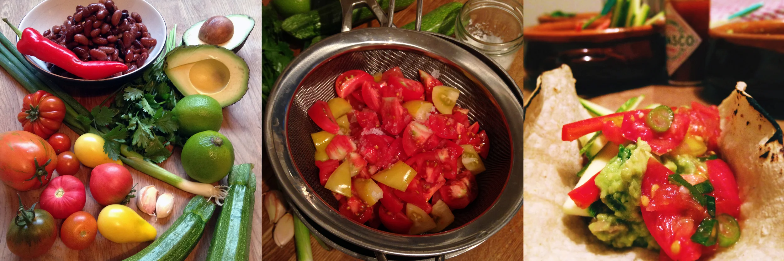 Tacos and burritos, so tasty, so comforting, so nutritious and so easy. As usual, these are more closely related to a wrap than to their authentic namesakes. But, whatever, we love them and try to have them as often as possible. They are simple to make and very satisfying. Looking back at the photos, they remind me of a kind of super salad with Tabasco, wrapped in a corn or sprouted grain tortilla. More often than not we have tacos and not burritos, this is simply because I am quite particular about my tortillas (wraps). Many brands offer seemingly "natural" tortillas that, on closer inspection, contain a number of ingredients that I would neither use in my cooking nor feed myself and my family.